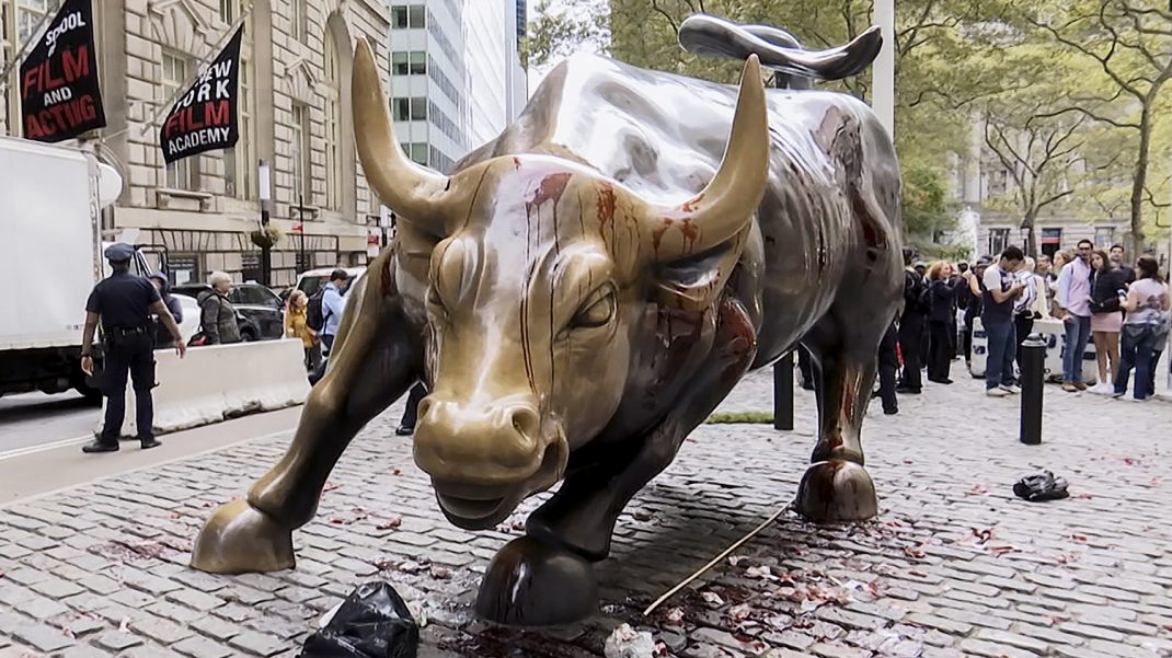 Экоактивисты облили кровью статую быка в Нью-Йорке