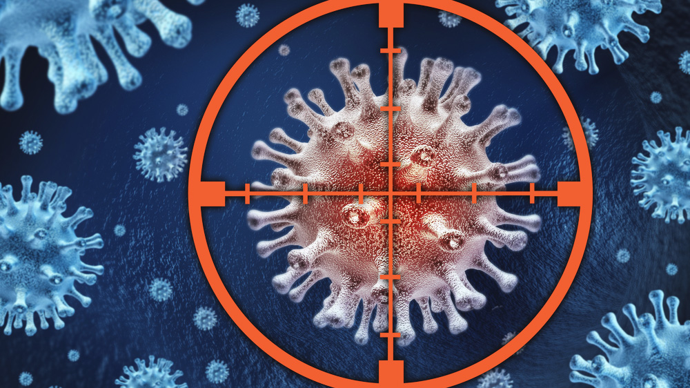 Cure the infection with targeted medical treatment with pharmaceuticals and proper doses of hospital medicine designed by bio scientists and doctors represented by bacterial virus cells with crosshairs target.